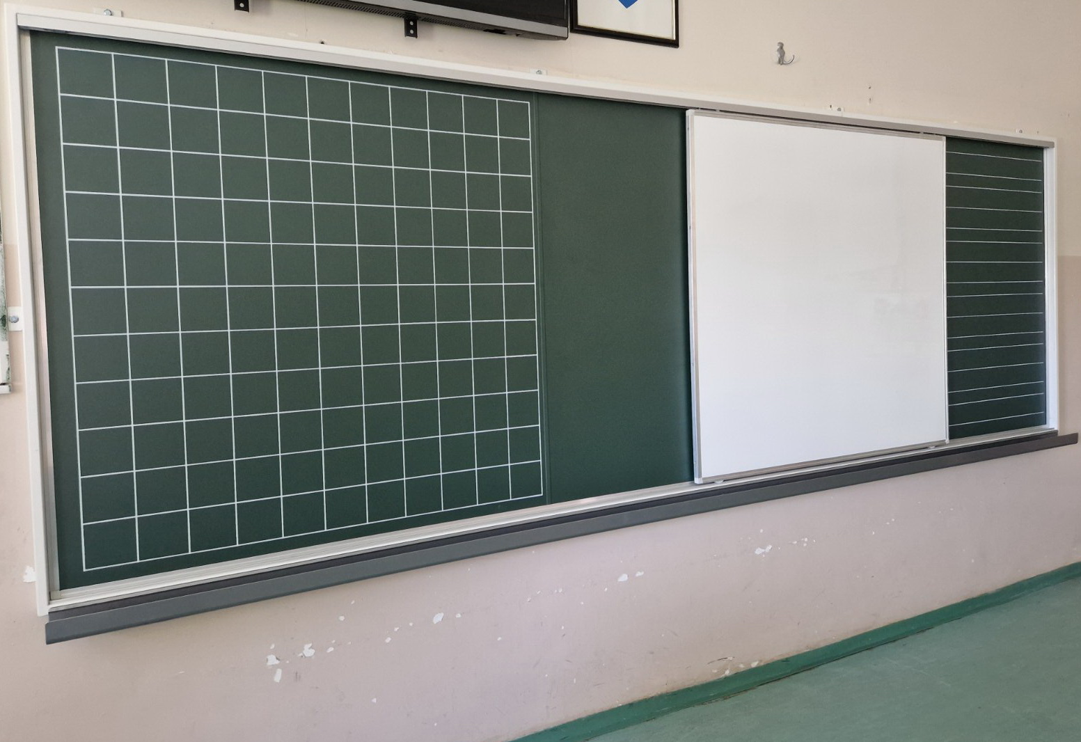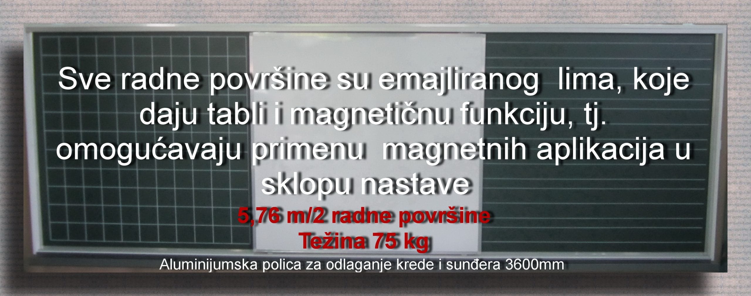Za ugradnju ovih vertikalnih tabli neophodna je minimalna visina od poda do plafona učionice od 330 cm. U cenu ovih tabli uračunat je i transport, montaža i servisiranje.